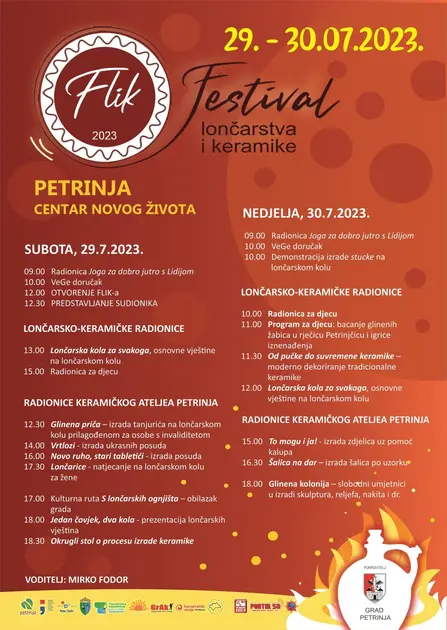 FLIK organiziraju Turistička zajednica Grada Petrinje, Keramički atelje Petrinja (udruga GRAK) i lončarski obrt Sunflower.