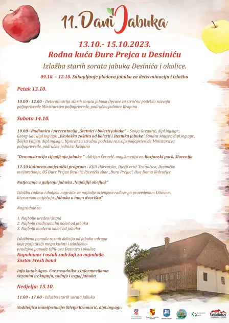 Od 13. do 15. listopada u Desiniću se u Turističkom informativnom centru u rodnoj kući Đure Prejca i oko kuće održava 11. izdanje Dana jabuka.